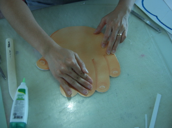 | 9-3) 풀칠을 해서 손그림의 안쪽에 붙인다. | |