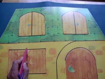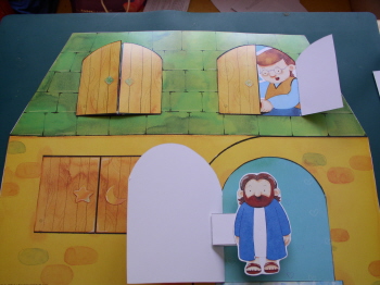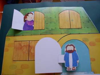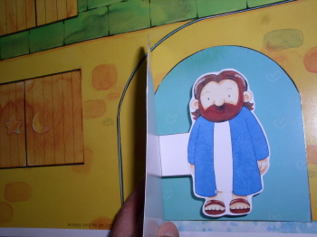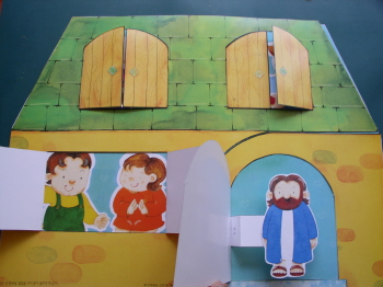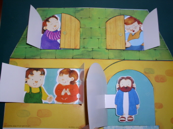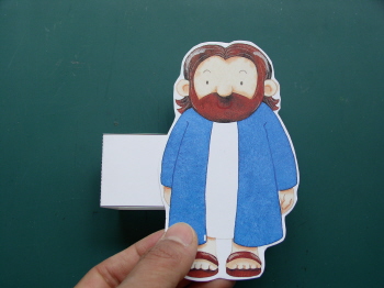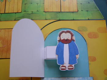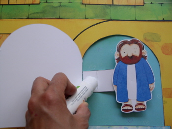 18-12 그림 두장을 살짝(19과에서 떼어내야 할 부분만) 고정시키고, 예수님을 붙일 부분은 단단히 도정시켜도 된다.